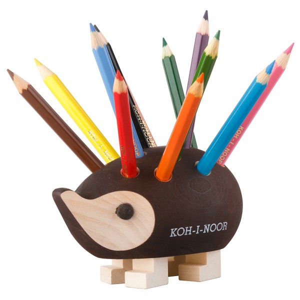 Mini-bois hérisson naturel, 105x70x67mm (avec 12 crayons de couleur)