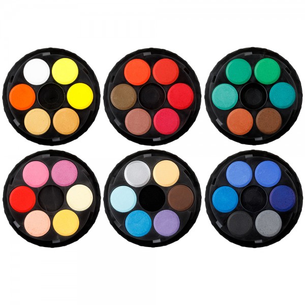 Peintures de pastilles Ø 22,5 mm. 36 couleurs assorti. Caroussel: 84x84x50mm
