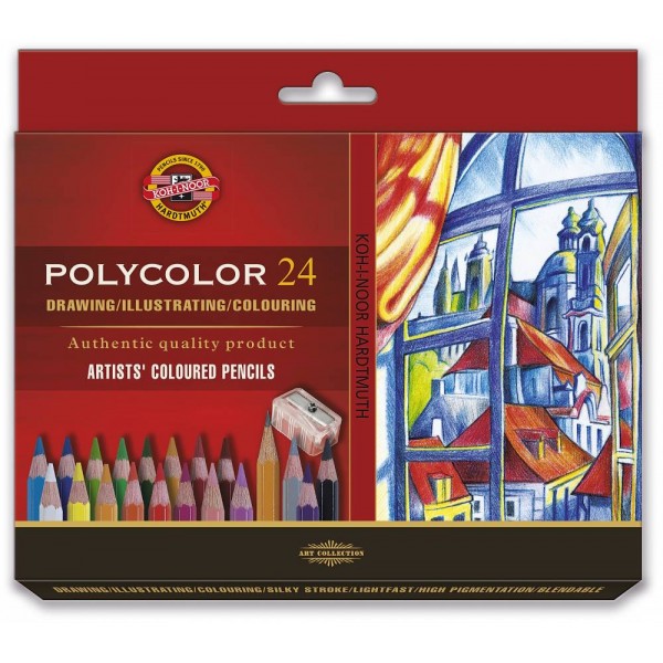 POLYCOLOR "Artist's Set à 24 pcs. assorti + aiguiseur de points. Boîte en carton 205x175x20mm