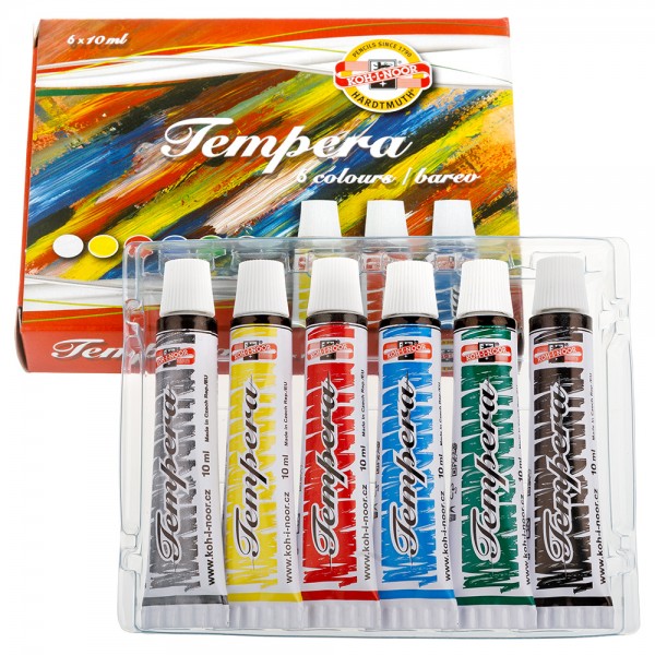 Peintures Tempera spécialement pour les écoles, mais aussi utilisés par des artistes professionnels. Ces peintures sont de haute qualité, d'épaisseur, peuvent être mélangés ensemble, sont, sûr et facile à laver soluble dans l'eau. Les peintures sèchent très rapidement et, une fois sec, peuvent être brossées avec de l'eau à nouveau. Ils sont basés sur des pigments finement dispersés dans un mélange d'huile approprié émulsion. Produit en 33 couleurs et dans de nombreux types d'emballages.