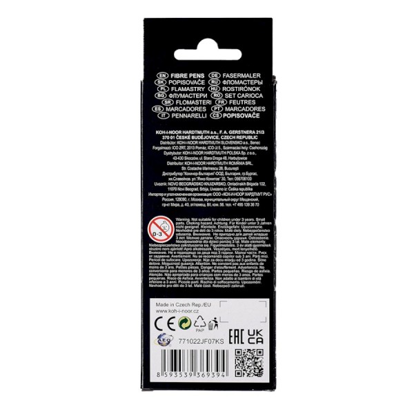 Viltstiften met ergonomische grip. Gevuld met kleurrijke, uitwasbare inkt en vervaardigd van materialen die minimaal 5 jaar bestand zijn tegen uitdroging. Indrukbare, stevige punten voor schrijven en schilderen met een schrijfbreedte van 1-2 mm en een schrijflengte van 300 meter. Alle gebruikte materialen voldoen aan de EN-71-normen. Verpakt in sets van 6, 10, 12, 18, 24 en 30 stuks in PP-doosjes.
