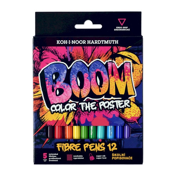 Viltstiften met ergonomische grip. Gevuld met kleurrijke, uitwasbare inkt en vervaardigd van materialen die minimaal 5 jaar bestand zijn tegen uitdroging. Indrukbare, stevige punten voor schrijven en schilderen met een schrijfbreedte van 1-2 mm en een schrijflengte van 300 meter. Alle gebruikte materialen voldoen aan de EN-71-normen. Verpakt in sets van 6, 10, 12, 18, 24 en 30 stuks in PP-doosjes.